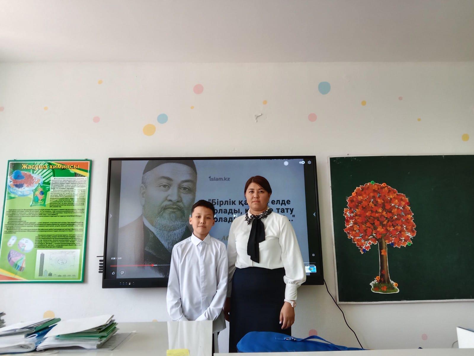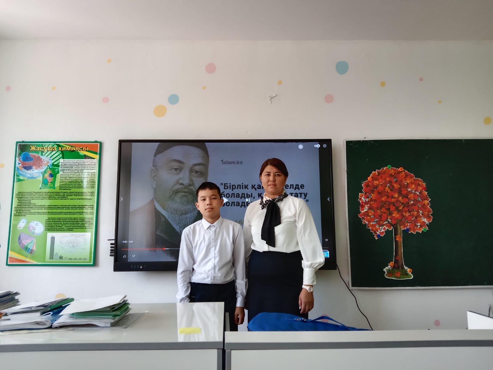 Шымкент қаласы білім басқармасына қарасты №62 Н.Төреқұлов атындағы жалпы орта білім беретін мектебінде 1 қыркүйек - Білім күніне орай жас ұрпақты Отанын сүюге, еліміздің рәміздерін қастерлеуге, бай – қуатты ел екендігін мақтан етуге үйретіп, туған еліне, жеріне деген сүйіспеншілігін арттыру, еңбек - адамгершілік құндылығы туралы түсініктерін кеңейту, еңбектің адам өміріндегі мәні туралы түсінік беру, еңбек етуге деген қызығушылықтарын ояту, дамыту, еңбексүйгіштікке тәрбиелеу мақсатында биология пәнінің мұғалімі А.Бектуреева 7 «В» сынып оқушыларымен «Білімге ұмтылу, еңбексүйгіштік және патриотизм» тақырыбында сынып сағатын өтті. Сынып сағаты барысында адам өміріндегі құндылықтардың рөлі талқыланып, сергіту сәтінде үлгілі оқушымыз Жұмаділ Альбина күй тартып, сабаққа ерекше көңіл-күй сыйлады.